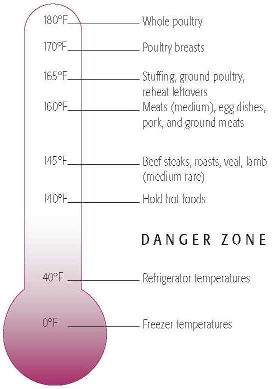 | Cook meat, poultry, and fish to safe internal temperatures to kill microorganisms. | |